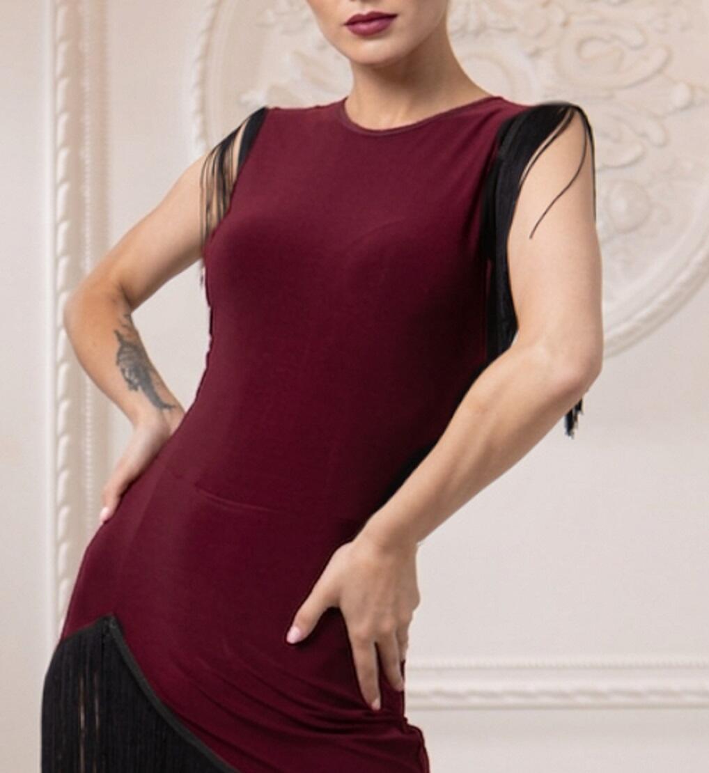 Tailored dress made exclusively for our brand, in tactel technical stretch jersey with a finish and shoulder straps finished with a row of black fringesSlit on one side.Apparently simple dress but very functional and attractive when worn.