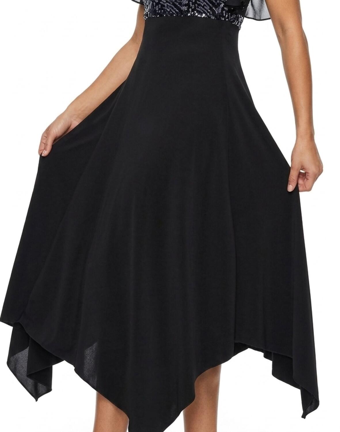 TAILORED DRESS MADE EXCLUSIVELY FOR OUR BRAND, IN BIELASTIC JERSEY, WITH THE BREAST PART IN A PRECIOUS SILVER GLOSSY FABRIC WITH LUMINOUS REFLECTIONS OF GREAT EFFECT AND HIGH QUALITY.WHEELED WITH LIGHT POINTS, SHORT SLEEVES WITH FLAPS IN SLIGHTLY TRANSPARENT ROLLETTED TULLE