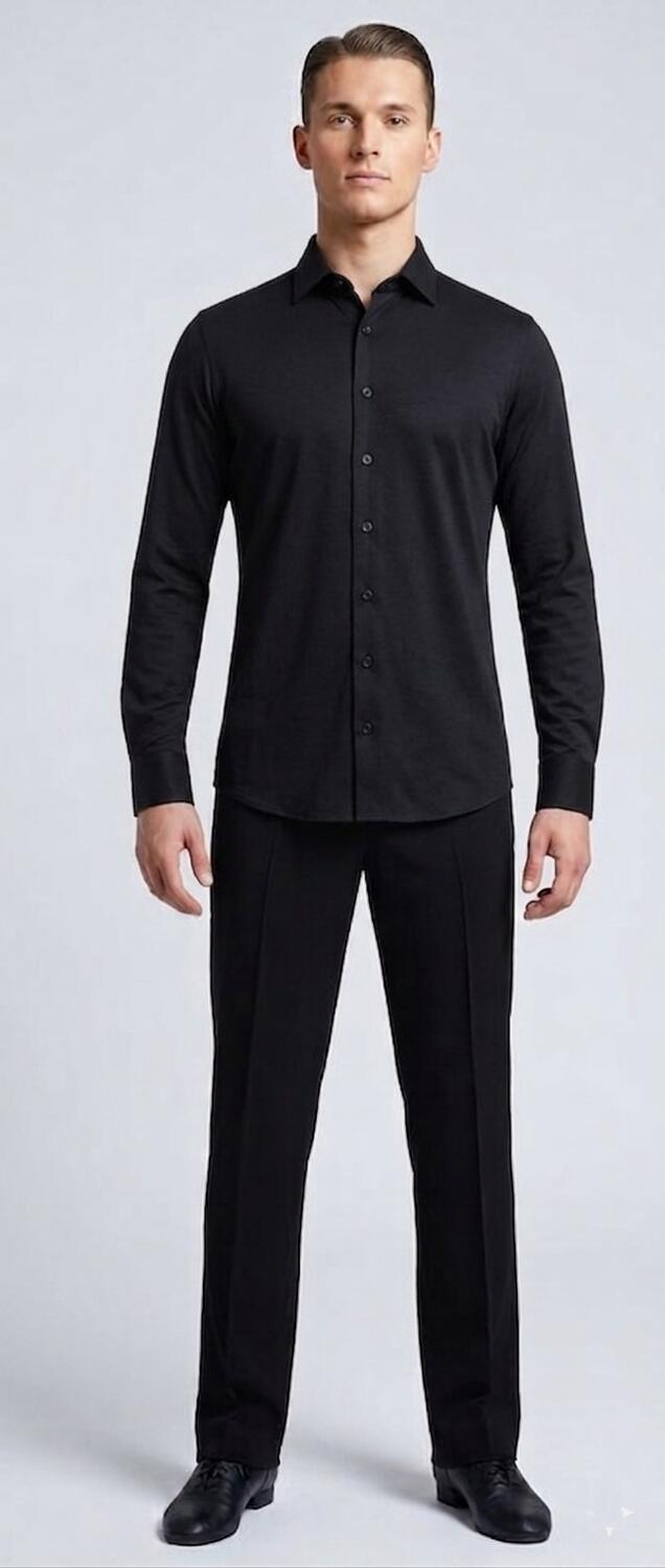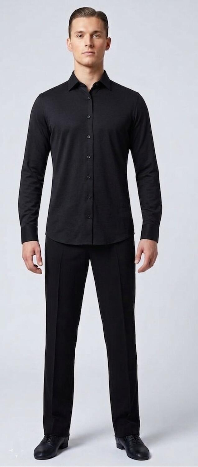 DANCE SHIRT FOR MEN MADE WITH STRETCH ELASTIC VISCOSE FABRIC. PERFECT FOR ANY OCCASION AND ALSO TO BE WORN ALONE OR WITH A VEST. SLIM FIT MADE WITH ELASTIC FABRIC.