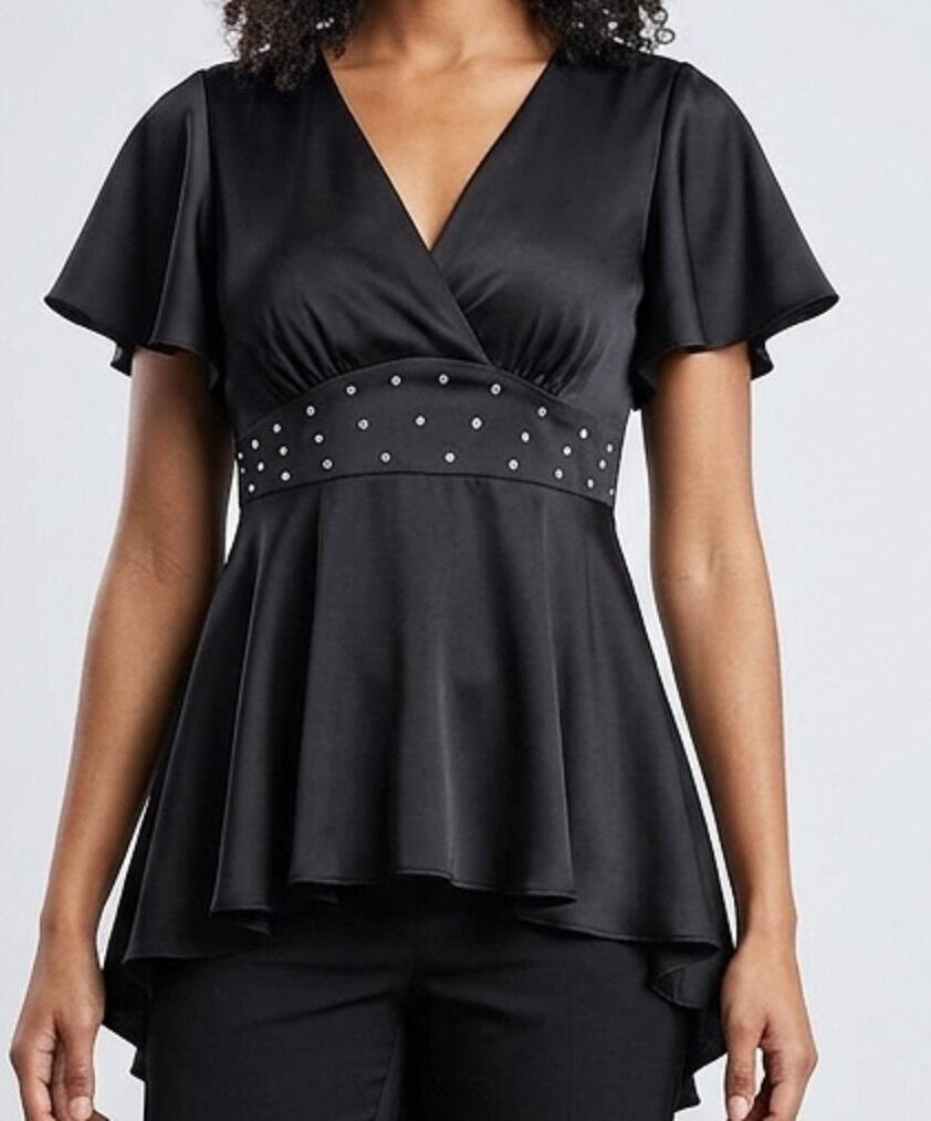 TACTEL T-SHIRT WITH VERY ELASTIC CROSSED STRETCHERS FRONT IN VERSION WITH LONG CODE BEHIND WITH ROLLETTED EARS AND RHINESTONES GREAT WATERPROOF