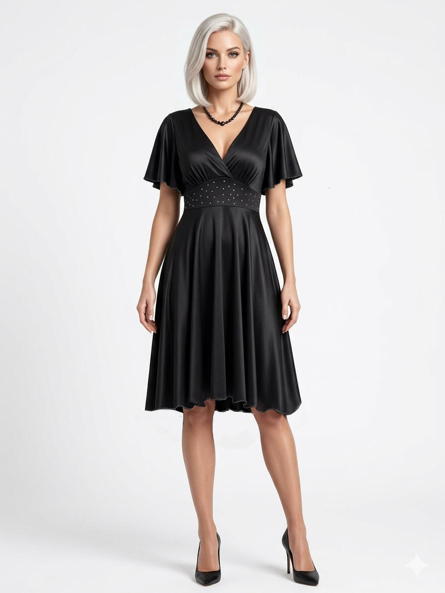 ABITO DA BALLO IN TACTEL MAGLINA ELASTICA AMPIO NELLA PARTE DELLA GONNA A RUOTA CON MANICHETTE ORLO ROLLETTATO E STRASS NEL PUNTO VITA . VESTIBILITA' ELESTICA PER TAGLIE DALLA 38 ALLA 42 NON SEGNA NEI FIANCHI.