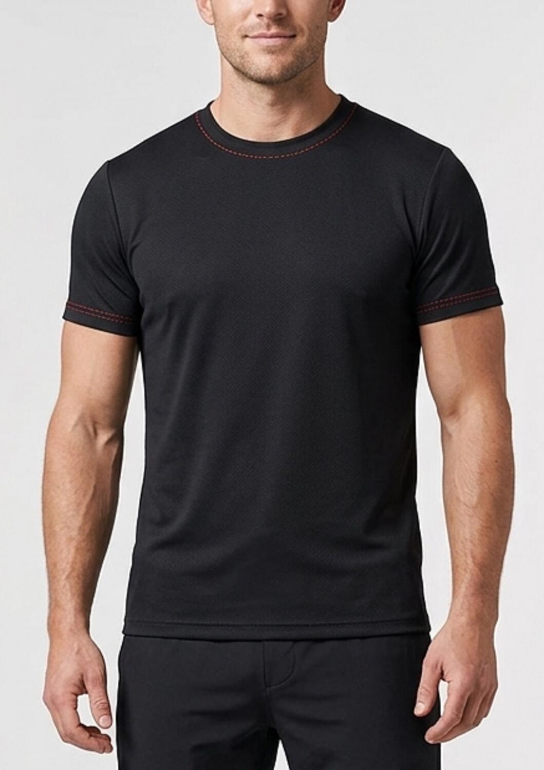 PRATICA MAGLIA DA BALLO PER UOMO A MANICHE CORTE CON COLLO ROTONDO SPECIALE TESSUTO TECNICO TEC-FIT CON CUCITURE ROSSE A VISTA