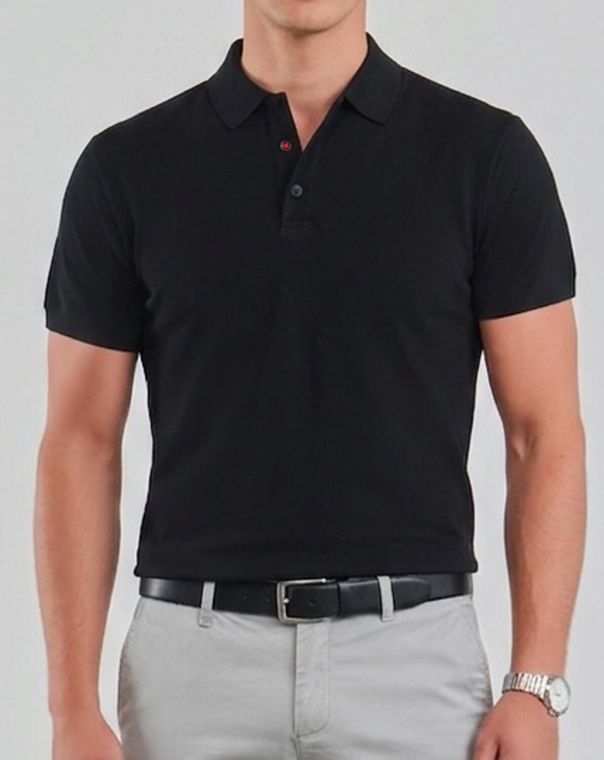 PRATICA ED ELEGANTE MAGLIA DA BALLO PER UOMO A MANICHE CORTE CON COLLETTO A POLO CON 3 BOTTONI NERI SPECIALE TESSUTO TECNICO TEC-FIT SENZA CUCITURE A VISTA