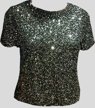 MAGLIA CON MANICHETTE CORTE IN MICRO PAILLETTES COMPLETAMENTE FODERATA IN TULLE,MOLTO COMODA ED ELASTICA NON LUNGA PER CONSENTIRE DI STARE FUORI DAI PANTALONI O DALLA GONNA PARTICOLARE DETTAGLIO IN PIETRE LUMINOSE NEL PUNTO DEL GIROCOLLO CUCITE A MANO CON FORMA A SFUMARE DA UN LATO , MOLTO ELEGANTE E LUMINOSA.